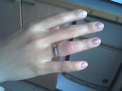 就連蚊子都為了慶祝這一天,特地去把米嫂的無名指叮得腫起來,以避免她在這個重要的日子裡偷偷的把戒指拿掉!NPNT,沒圖沒真像,從下面的照片可以看的出來米嫂的無名指跟其他手指比起來特別肥大,嘿嘿嘿~~